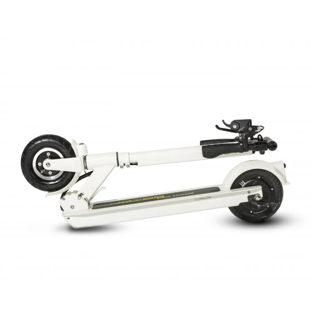 Складная конструкция электросамоката позволяет одним движением руки он сложить устройство пополам, поэтому вы легко сможете взять его с собой в общественный транспорт или автомобиль. А за счет небольшого веса (всего 13 кг) вы легко сможете нести его в руках.