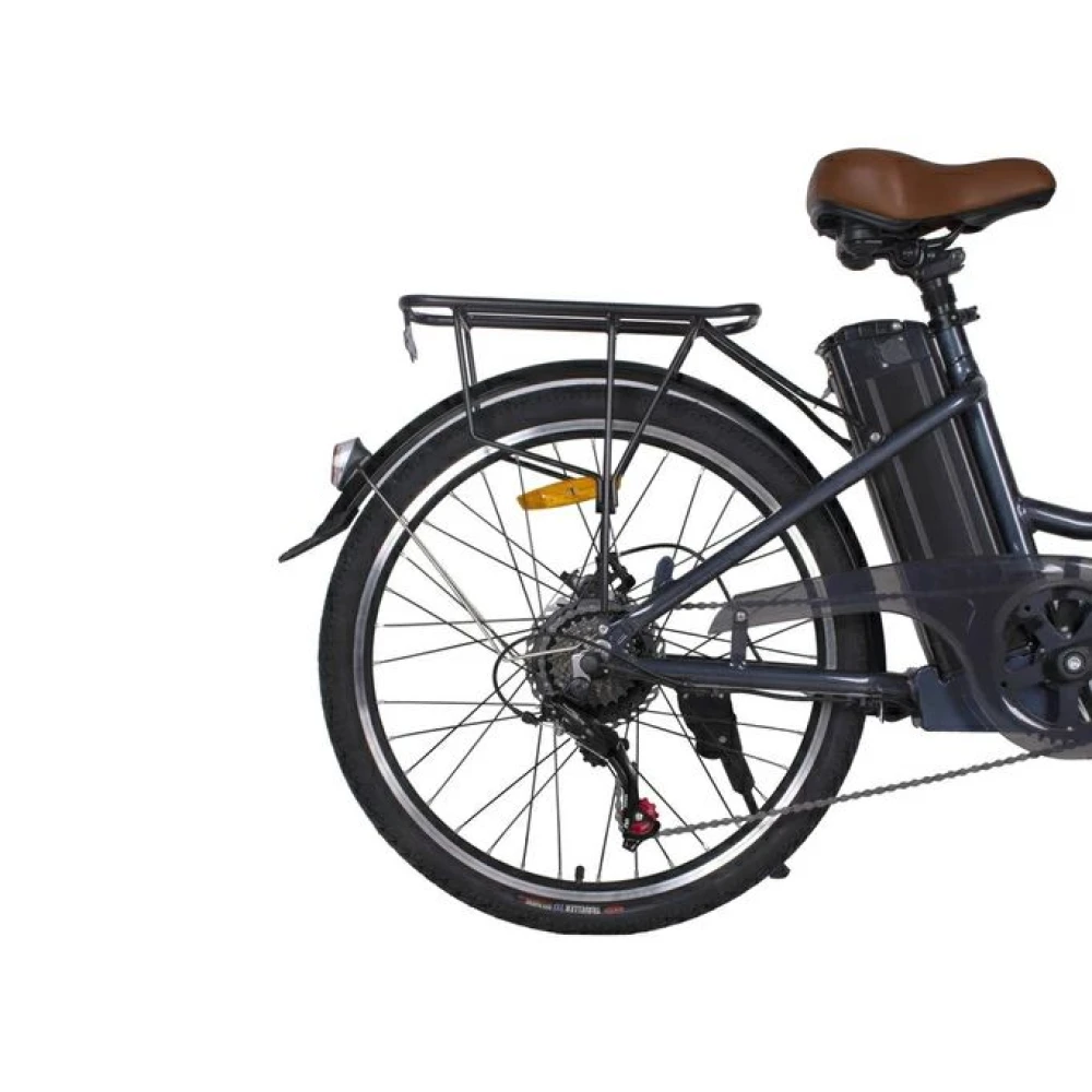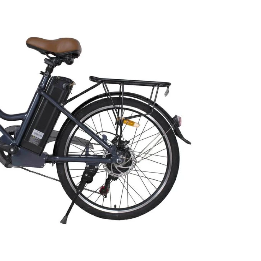 Инновационный материал изготовления гарантирует длительный срок службы без потери первоначальных характеристики. Благодаря мощному мотору и емкой батарее 13А*ч электровелосипед способен разгоняться до 32 км/час и преодолевать дистанцию в 40 км.